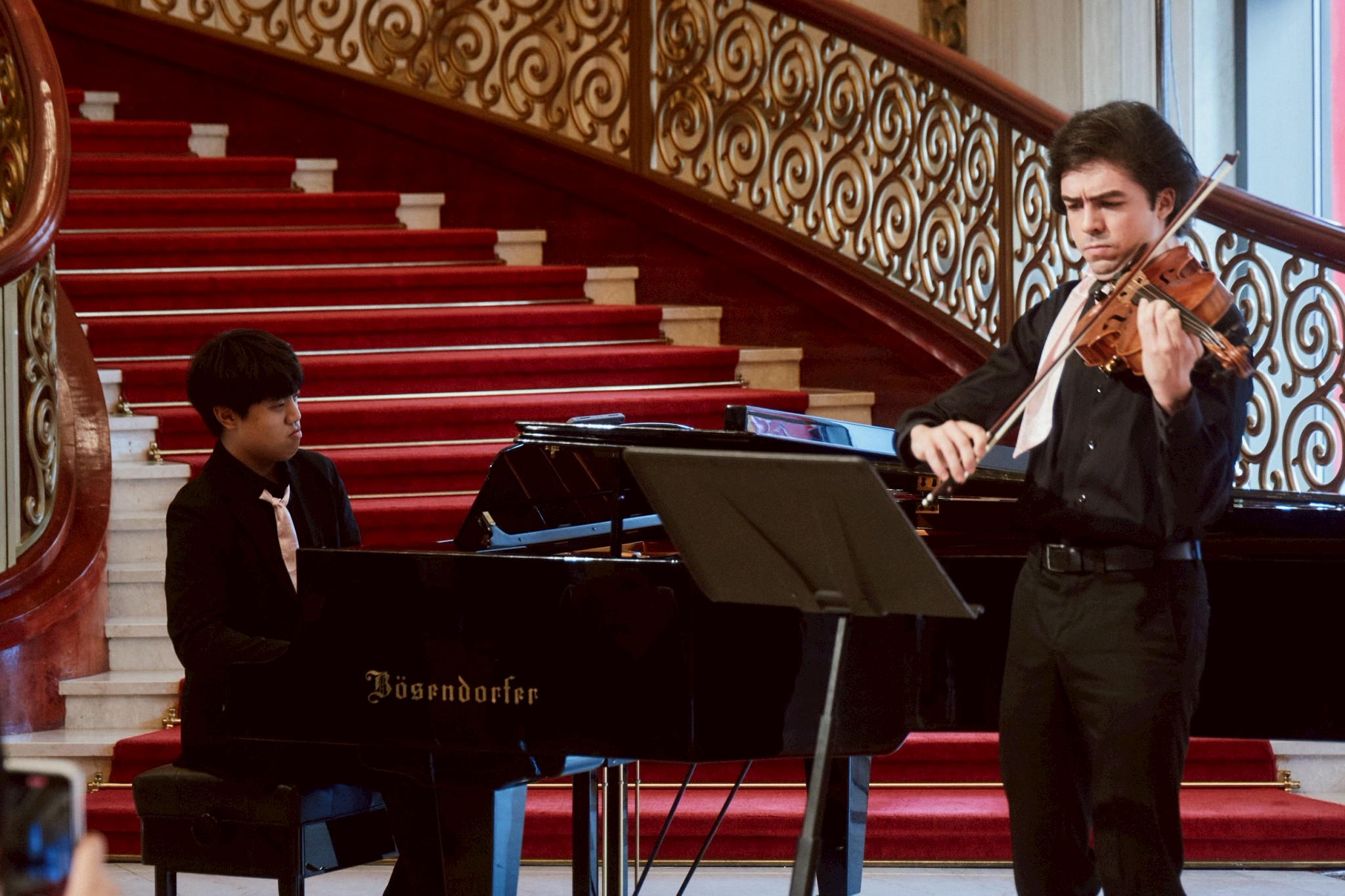 圖三、(左)鋼琴/鄭勝豪(右)中提琴/París Cabezudo Alejandro 記者會現場演出普羅柯菲夫:前奏曲,選自《羅密歐與茱麗葉》