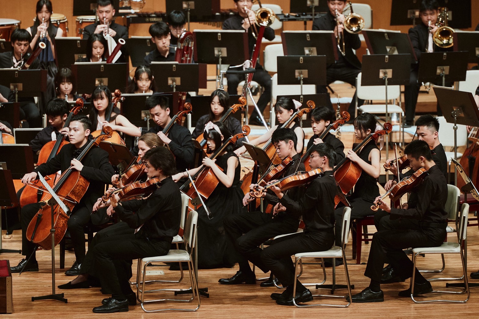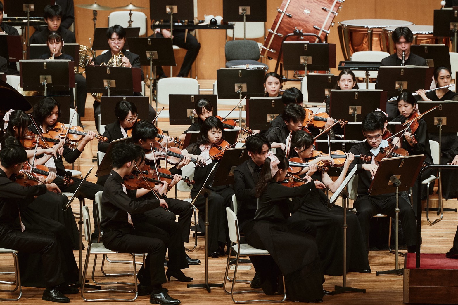 歷經近半年的籌備,國家青年交響樂團(NSYO)於2025年7月展開暑期巡演,由國家交響樂團(NSO)音樂總監準.馬寇爾(Jun Märkl)率領,自臺灣北、中、南三地起步,並於8月1日首次登上海外國際規格的舞臺——橫濱港未來館音樂廳。今日(8月2日),NSYO更與日本國立音樂大學管絃樂團於東京攜手合作,在熱烈的掌聲中,為五場巡演旅程劃下圓滿句點。東京壓軸場地為日本國立音樂大學音樂廳,隸屬於今年迎來創校一百週年的國立音樂大學(1926年創立,原為東京高等音樂學院)。近一個世紀以來,該校培育出無數知名演奏家、教育家與音樂文化專才,對日本音樂發展影響深遠。此場音樂會亦是該校百年系列活動之一,別具紀念意義。音樂廳出自同樣負責東京文化會館設計的日本戰後現代主義建築大師前川國男(まえかわ くにお)之手,典雅的朱紅色建築外觀並兼具當代音樂廳所需的功能性,不僅是日本音樂教育與演出的重要據點,也持續成為國際音樂交流的重要平台。