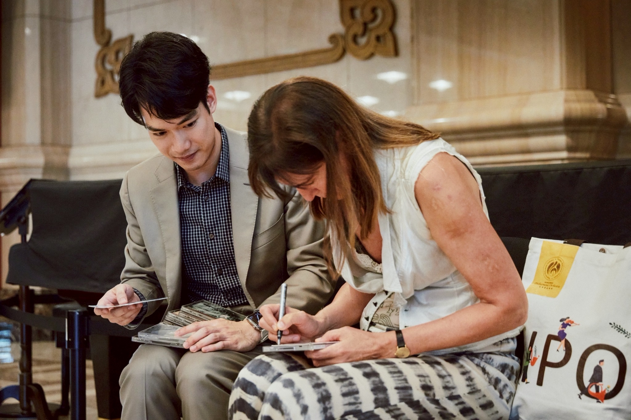 圖四、小提琴家林品任請小提琴家維多利亞.穆洛娃,為珍藏的CD簽名